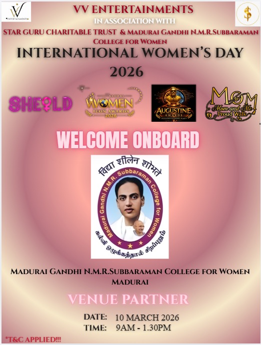 VV Entertainments in association with Star Guru Charitable Trust and Madurai Gandhi N.M.R. Subbaraman College for women have celebrated International Women’s Day on 10th March 2026.
